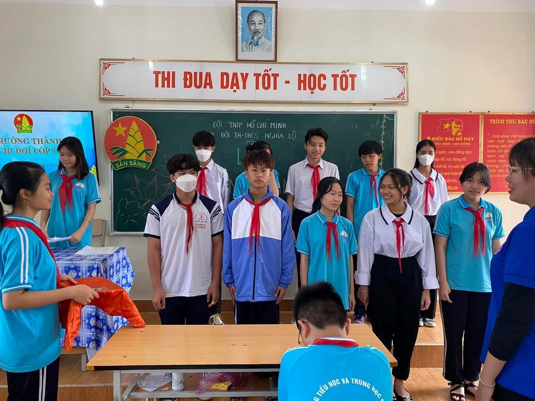 Thực hiện theo điều lệ, nghi thức Đội thiếu niên tiền phong Hồ Chí Minh về việc công nhận Đội viên đã hoàn thành chương trình rèn luyện đội viên. Trải qua nhiều năm được rèn luyện phấn đấu trong tổ chức Đội TNTP HCM, các đội viên khối 9 của trường TH&THCS Nghĩa Lộ đã đủ điều kiện được trưởng thành Đội.