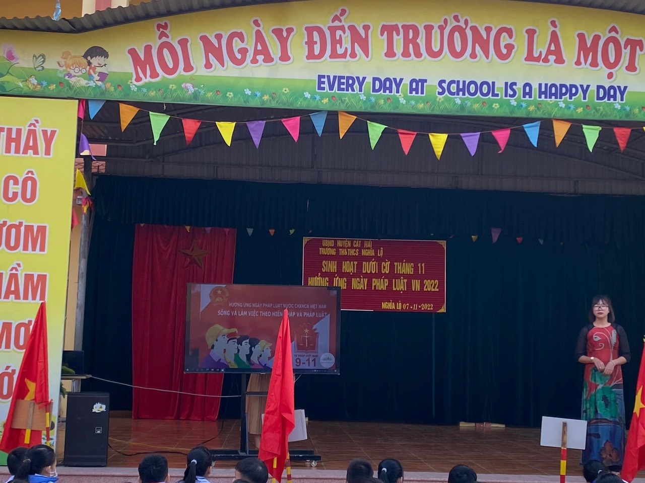 Thực hiện Kế hoạch Tổ chức thực hiện Ngày Pháp luật năm 2022 trên địa bàn huyện Cát Hải. Với chủ đề: “Thực hiện Hiến pháp và pháp luật góp phần xây dựng Nhà nước pháp quyền xã hội chủ nghĩa; bảo vệ quyền con người, quyền và nghĩa vụ cơ bản của công dân”. Hôm nay ngày mùng 07/11/2022 trường TH&THCS Nghĩa Lộ tổ chức tuyên truyền Ngày Pháp luật Việt Nam 2022.